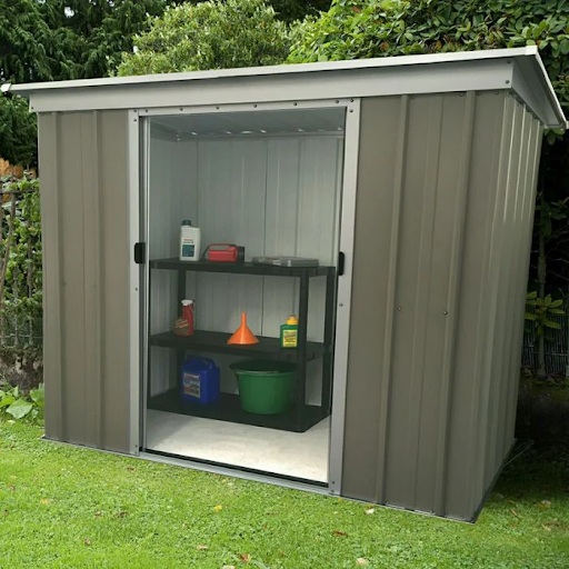 9 x 4 Outdoor Backyard Garden Metal Storage Shed for Utility Tool Storage Sloped Flat Roof Lockable Sliding Door Brown. Our steel sheds are a long-lasting option for everything from tool to vehicle storage. We also apply an anti-condensation non-drip barrier to the walls and roof ensuring the contents of your steel shed stay safe and dry with our harsh Irish weather.