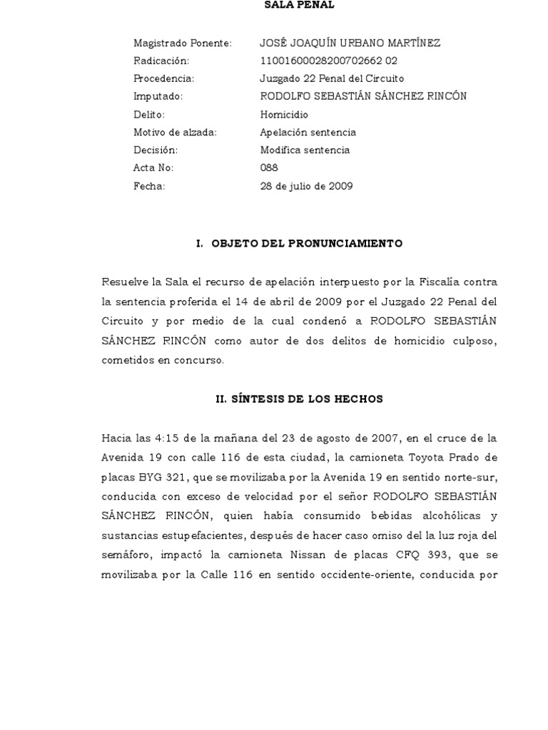 Sentencia Penal Dolo Eventual Pdf Homicidio Intencion Derecho Penal