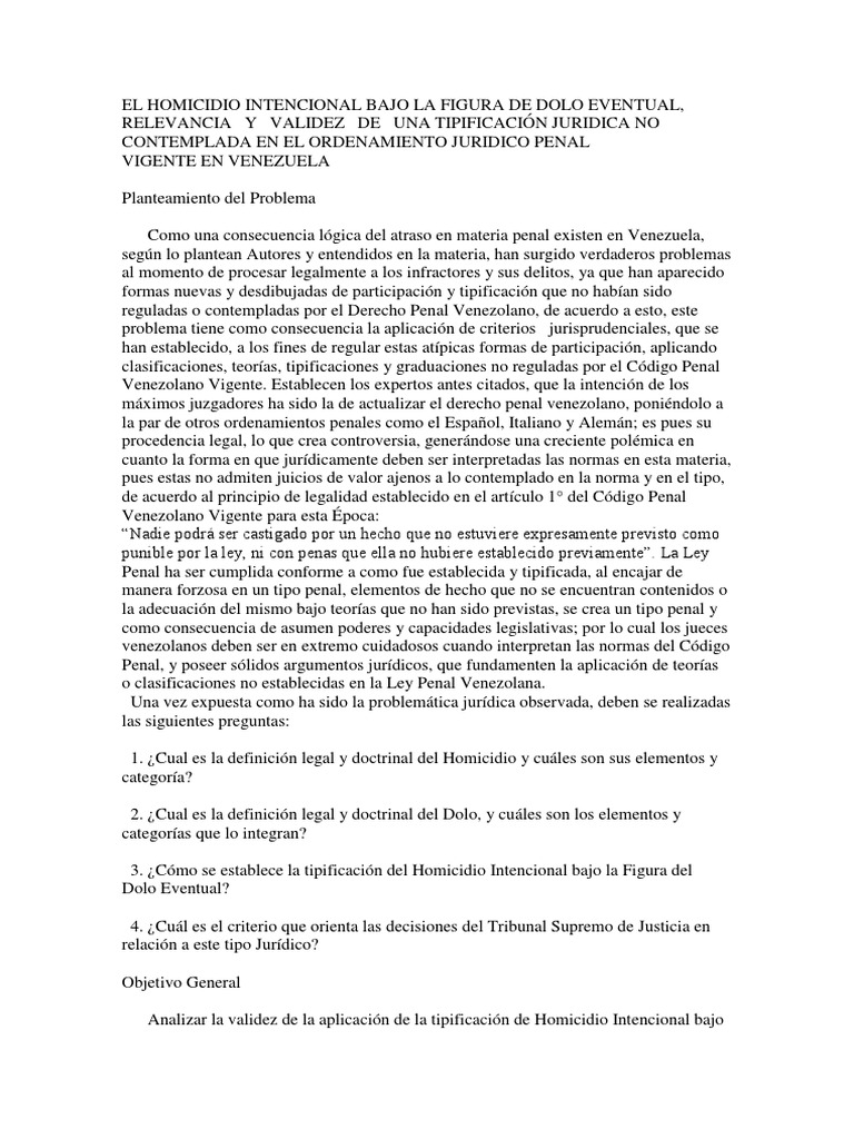 El Homicidio Intencional Bajo La Figura De Dolo Eventual Pdf Intencion Derecho Penal Homicidio